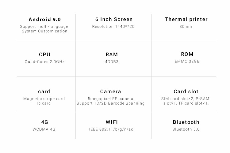 5.0 Inch Android 11 NFC 1D 2D Code Handheld Terminal Printer POS model:H8 4G/3G/GPRS Android 11 5MP camera 5.0inch More