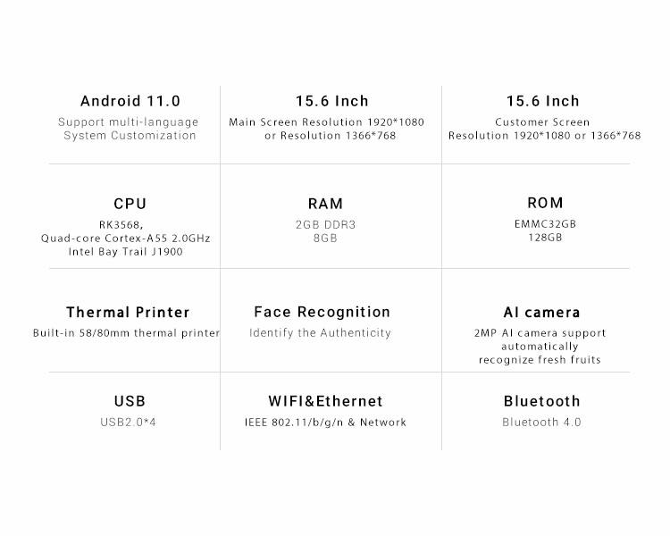 The dual-screen AI cash register all-in-one machine reduces transaction times, minimizing customer wait times and, in turn, enhancing customer satisfaction. Customers can clearly see purchase information, and the reduction of human errors during the payment process makes the entire shopping experience more pleasant.