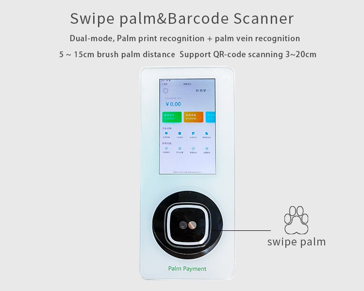 biometric vein scanne 5. 0Inch palm swiping payment device, biometric palm vein scanner Hand vein scanner payment Support QR-code scanning