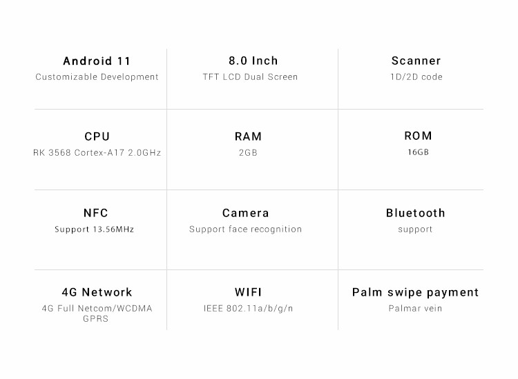 ·Rich functions, can support credit card, scan code, brush palm, brush face