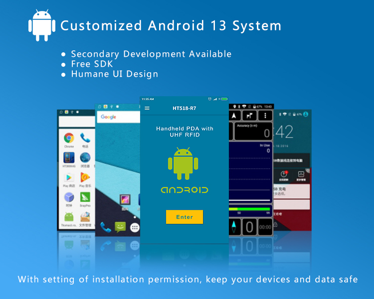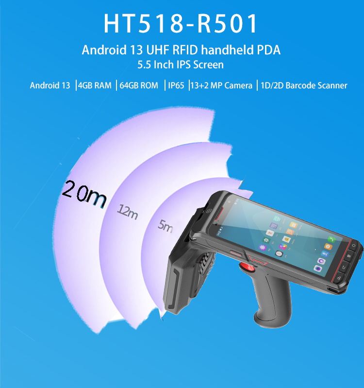 GuangzhouHT518-R501 UHF Handheld Terminal is a powerful and rugged mobile computer designed for professional data collection, asset tracking, and warehouse management. Equipped with Android 13 OS, a 5.5-inch HD display, and a high-performance Octa-core 2.3GHz processor, it delivers fast and reliable performance in demanding environments.