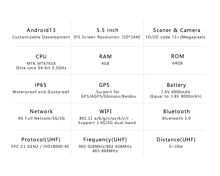 Android 14.0 Handheld pda 5.45inch PDA UHF RFID Reader scanner 21m Long Range rfid scanner Model:R20 4GB+64GB Android 14.0 Touch screen 5.45inch More