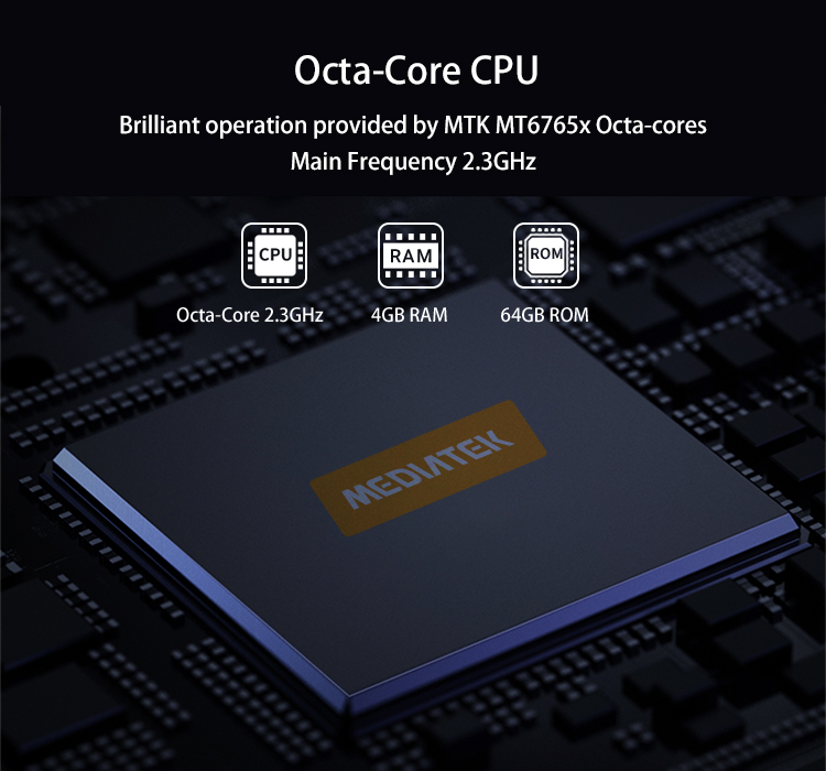 MT6765X Octa core 64-bit 2.3GHz high-performance processor |