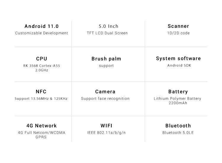 5.0 Inch Android 11 NFC 1D 2D Code Handheld Terminal Printer POS model:H8 4G/3G/GPRS Android 11 5MP camera 5.0inch More